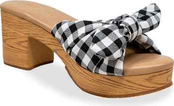 Step into sunny-day style with these slide sandals featuring knotted vamp strap and a chunky platform wrapped in a faux-wood platform for a touch of texture.