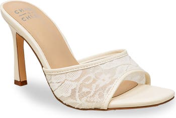 Perfectly poised and fit for any occasion, this classic squared-toe sandal features floral-lace panels to further refine your look.