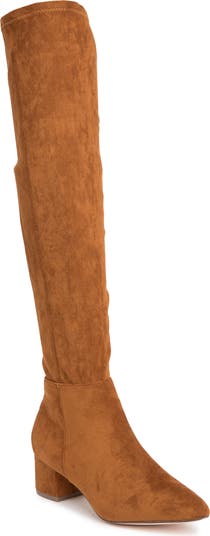 A svelte faux suede crafted over the knee boot supported by a low block heel, that's sure to become a staple in your wardrobe. Sizing: True to size.