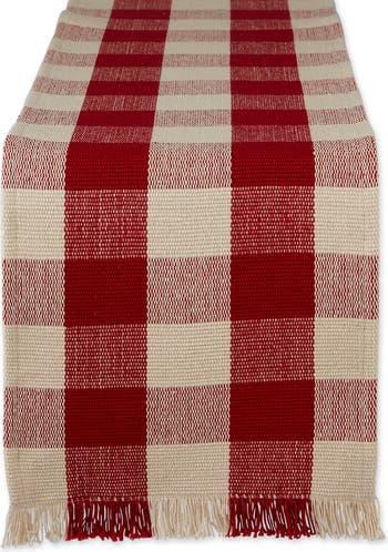 Textured in an always-classic checkered design, this cotton table runner trimmed in wispy fringe will be an everyday favorite, especially because it's machine washable.