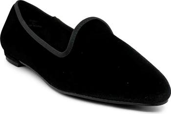 Enjoy the minimalist style of this almond-toe loafer constructed from a luxe velvet for a polished look.