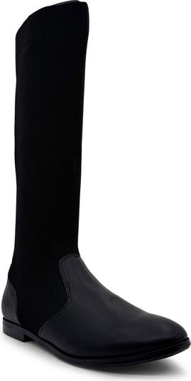 Easily move through your day with this tall boot featuring stretchy knit panels and a low block heel.