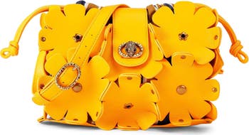Vibrant yellow flowers cut out from lambskin leather make up this statement bag illuminated by the brand's signature eagle hardware.