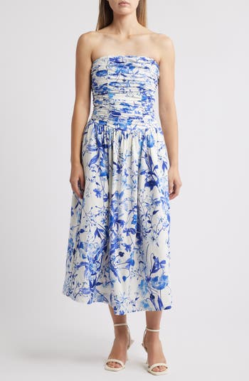 A lightweight, breathable linen blend gives warm-weather flair to this strapless sundress designed with a smocked back panel for a perfect fit every time.