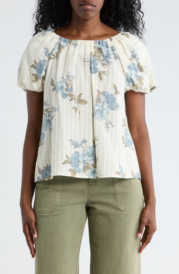 Pretty blooms and puffy sleeves bring romantic appeal to any look when you don this crisp cotton top on casual or elevated outings.