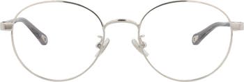 Logo-branded temples add understated style to these round optical frames fitted with prescription-ready lenses.