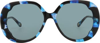 Scalloped edges bring modern style points to these oversized round-framed sunglasses complete with subtle branding at the temples.