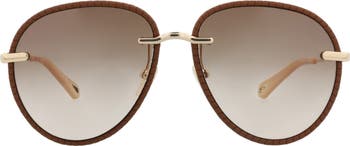 Add statement shade to your look with these leather-wrapped, metal-framed sunnies fashioned in a round silhouette and fitted with gradient lenses.
