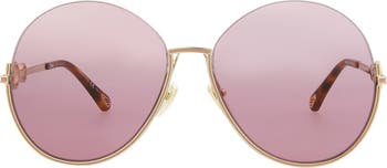 Slender half frames and gradient lenses draw eye-catching distinction to a pair of oversized sunglasses offering chic eye-protection.