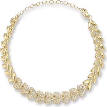 14K Gold Plated Pavé Cubic Zirconia Leaves Bracelet