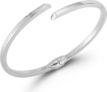 A squared silhouette brings a contemporary update to this brightly-polished bypass cuff finessed in icy rhodium plated sterling silver.