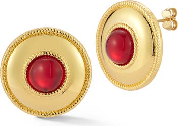 Colorful crystals fill the center of button stud earrings featuring a dainty rope twist trim and finessed in 18-karat gold plating for a lasting luster.