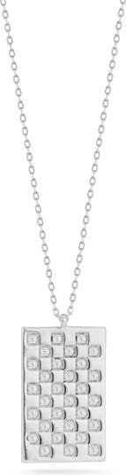 Cubic Zirconia Checkered Tag Pendant Necklace