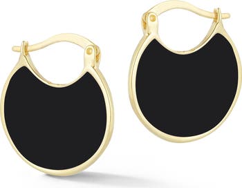 These statement-making hoops are centered with colorful enamel and plated in warm 14-karat gold.