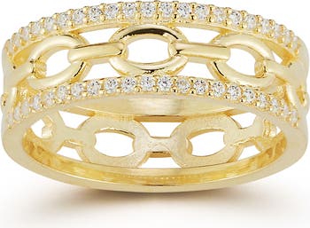 Bring structured shine to your stack with this sterling silver ring outfitted with rigid links and cubic zirconia.