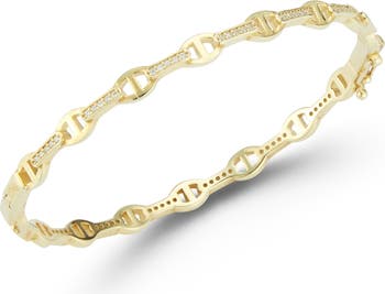Bring structured shine to your stack with this sterling silver bangle outfitted with mariner links and cubic zirconia.
