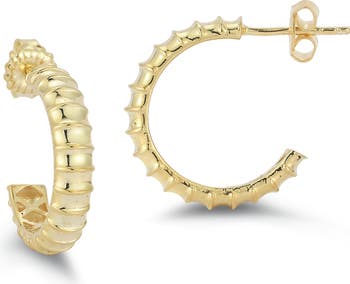 A ribbed texture adds extra style points to these 14-karat gold-dipped hoop earrings that instantly elevate any look.