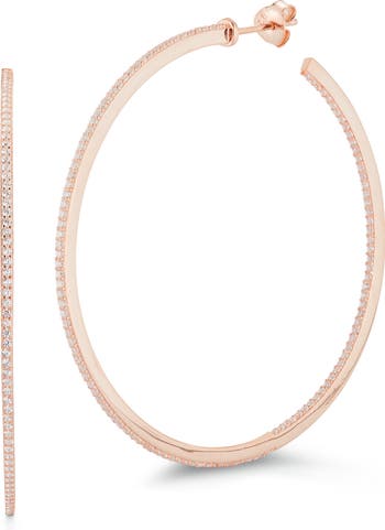 Add a warm welcome to your ear stack with these rosy 14-karat gold-plated hoops defined by their large size and row of shimmering cubic zirconia.