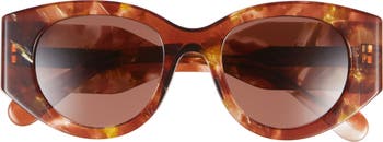 Retro vibes meet striking flair with chunky cat-eye shades featuring designer branding at the temples.