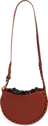 Meticulous whipstitching highlights the rounded silhouette of a compact hobo bag cut from supple leather and finished with gleaming C-shaped hardware. A contrast lambskin-leather drawstring pouch relaxes the sophisticated aesthetic.