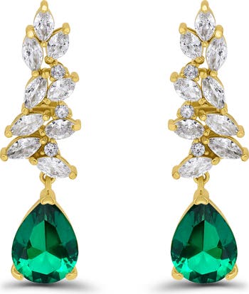 Bring elegant shine to your lobes with these stunning drops featuring teardrop-cut colorful cubic zirconia stones that are topped with a cluster of white ones.