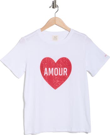 This cotton short-sleeve T-shirt is finished with an embellished “amour” heart graphic for a playful, romantic touch with everyday appeal.