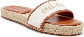 Show off resort-ready style in this lightly cushioned espadrille sandal fashioned with an embroidered vamp, woven jute footbed and a flat, walkable sole.