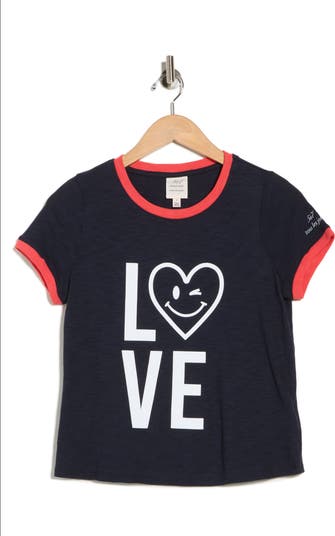 This soft jersey ringer T-shirt brightens your day with a cheerful love graphic and contrasting crewneck and sleeves.