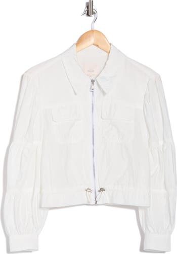 Blousy, tiered sleeves add a sweet finishing touch to a lightweight woven jacket fashioned with an adjustable drawcord that allows you to adjust the fit per wear.