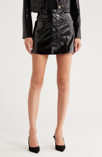 Elevate your night-out look with this shiny faux-leather miniskirt cut in an A-line silhouette and finished with handy patch pockets.