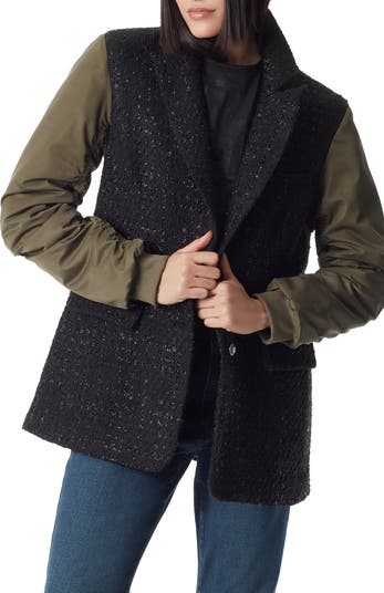 Sporty sleeves frame this polished blazer-meets-bomber crafted in a tactile tweed.
