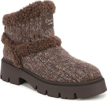 Cooler temps call for this cozy bootie that will keep feet warm with faux-fur lining and a soft knit upper.
