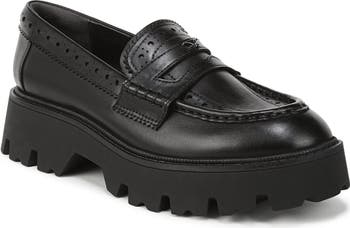 Embolden any ensemble with this platform lug sole penny loafer balanced with dainty details like logo hardware and brogue trim.