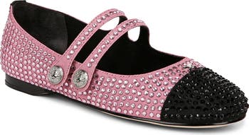 Double mary jane straps sweeten the silhouette of a flat covered in crystals.