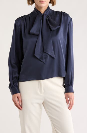 Refresh your workday essentials or polish up your weekend outfits with this flowy silk top framed with a tie neckline and long sleeves.