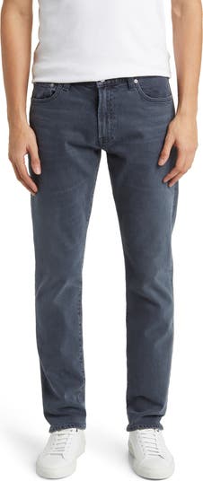 A whiskered finish adds to the lived-in look of stretch-kissed jeans that fit fuller at the hips and thighs before narrowing from the knee to the hem.