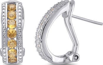 Channel-set citrine and flanked by round-cut crystals on these hoop earrings crafted from sterling silver.