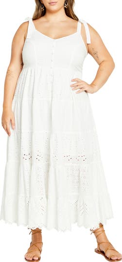 Eyelet embroidery intensifies the sweet, summery style of this lightweight cotton maxi dress.