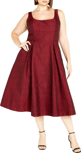 Jacquard fabric lends touchable style to this elegant fit-and-flare midi dress cut in a sleek, sleeveless silhouette.