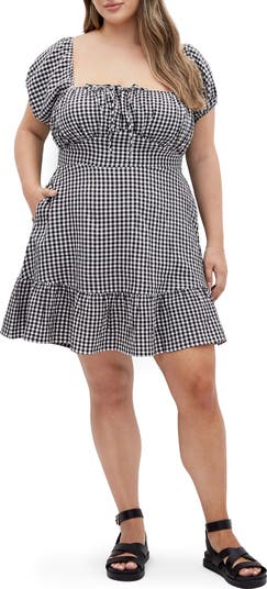 Gingham checks inspired by picnic cloth amplify the warm-weather vibe of this charming minidress framed by perfectly puffy sleeves.