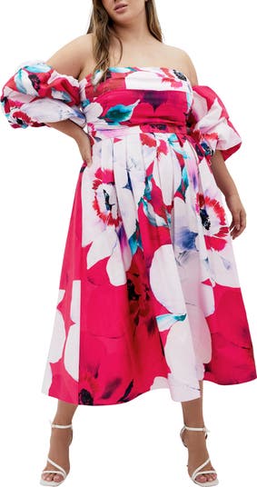 • Adelyn Rae Bird of Paradise Print Cotton & Linen Midi Dress