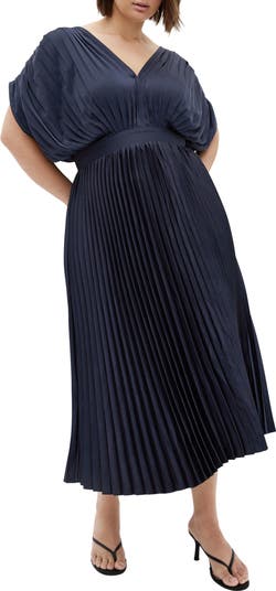 Lots of pleats give statement-making movement to this elegant dress made of soft satin.