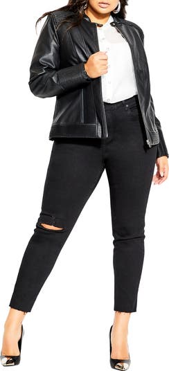 Ribbed detailing adds an extra hint of texture to this suave faux-leather moto jacket.