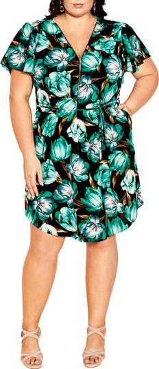 Jewel-toned tulips pattern this flutter-sleeve dress with a zippered placket and everyone's favorite accessory—pockets.