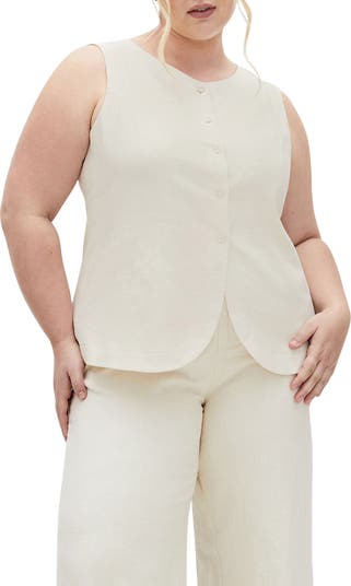 Refine any look with this linen-blend vest that's shaped by princess seams and perfect for wearing solo. A cinch belt at the back adjusts the fit.