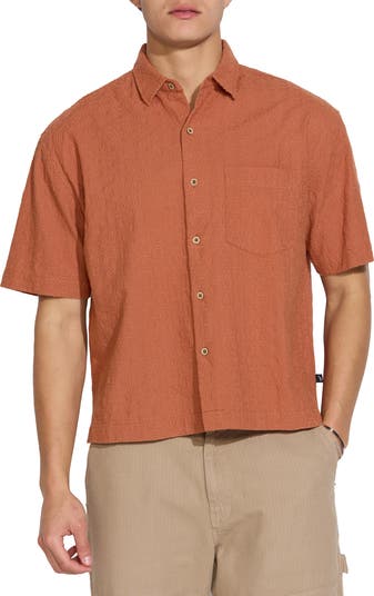 A go-to for getaway vibes, this cotton resort shirt combines a relaxed fit with geometric embroidery for a staple that looks great worn solo or layered.