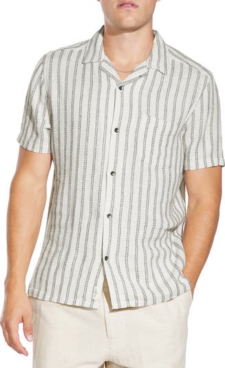 Lightweight and laid-back, this yarn-dyed cotton resort shirt framed with a notched collar features a relaxed fit that's ideal for a day in the sun.