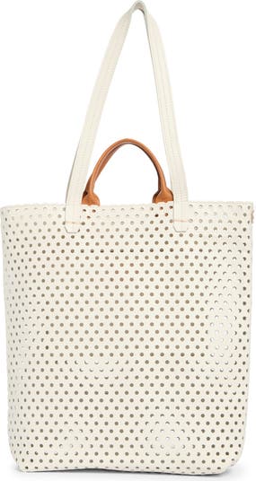 Handles and straps double your carrying options on this perforated leather tote ready to hit the shops.