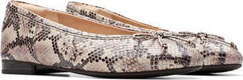 A delicate vamp bow and rich leather distinguish a timeless ballet flat grounded by a cushioned footbed for lasting comfort.
