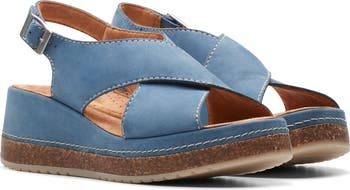 Ground your warm-weather looks in comfort with this cork-boosted wedge sandal sporting wide nubuck straps and a molded Contour Cushion footbed.